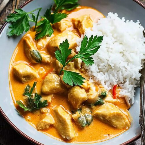 Auch Vegan Thai Curry lässt sich auf diese Weise planen. Statt Hähnchen wählt man einfach pflanzliche Alternativen und bereitet die Sauce wie gewohnt zu. Das macht das Rezept vielseitig und alltagstauglich.