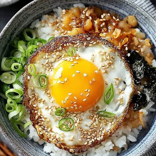 Besonders spannend finde ich, wie unterschiedlich die Texturen wirken, sobald man die Eier über den heißen Reis gießt. Sie verbinden sich sanft, ohne den Charakter der einzelnen Zutaten zu verlieren. So entsteht ein Essen, das Komfort und Wärme schenkt.
