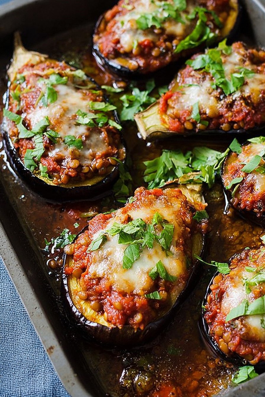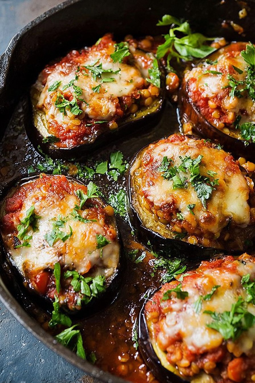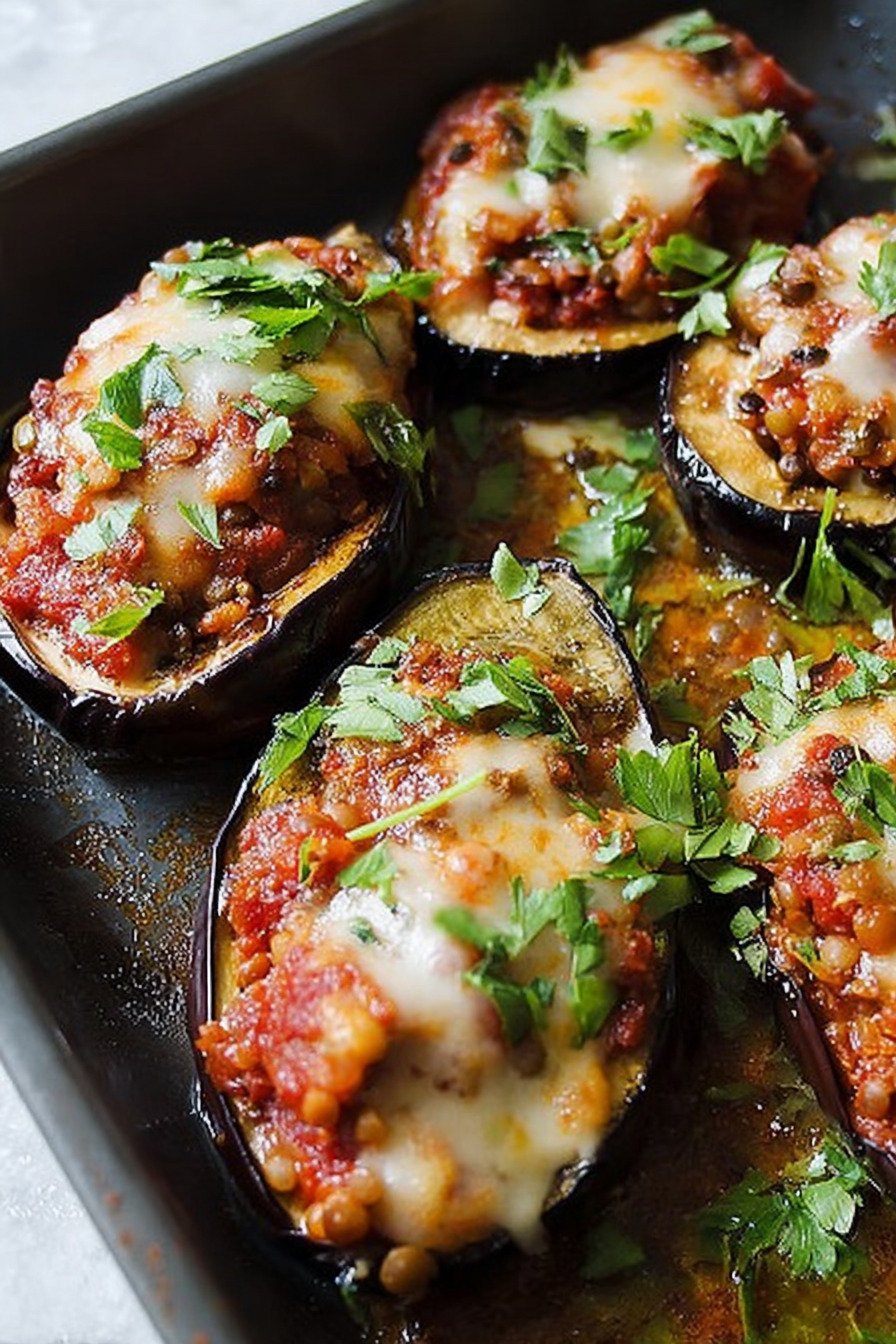 • 2 Easy Gefüllte Auberginen mit Linsenbolognese Recipe