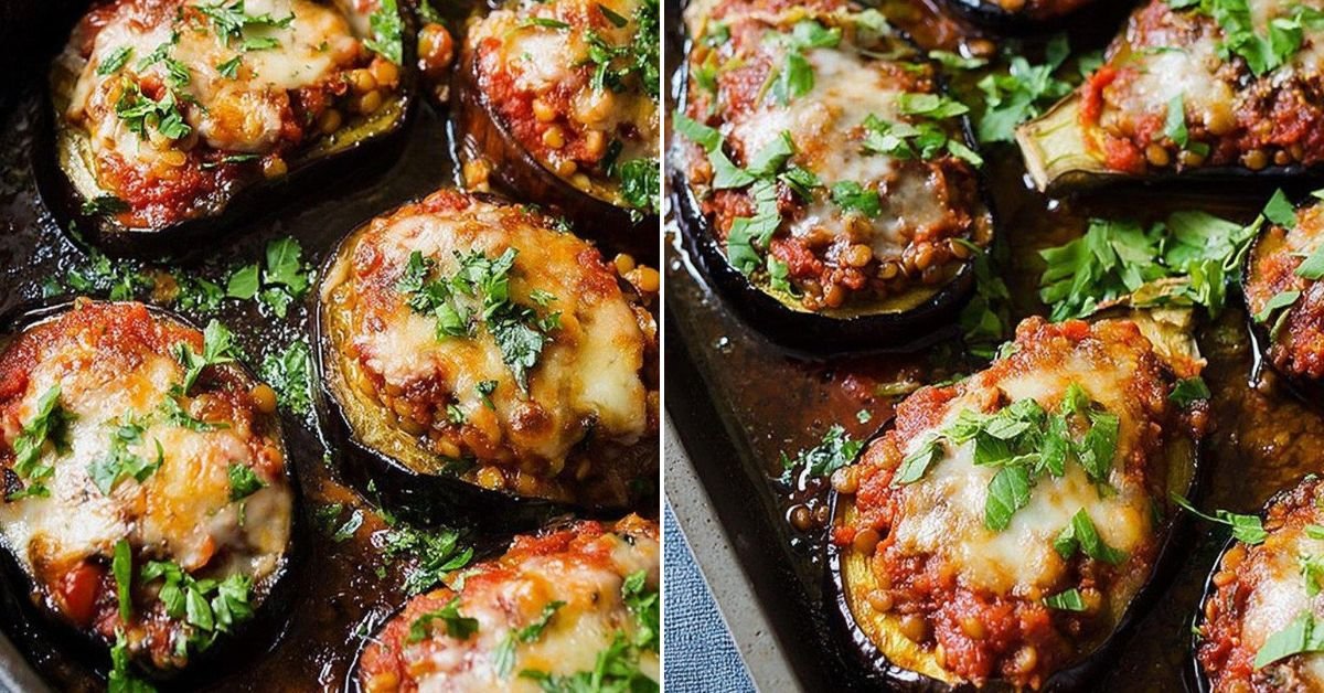 • 2 Easy Gefüllte Auberginen mit Linsenbolognese Recipe