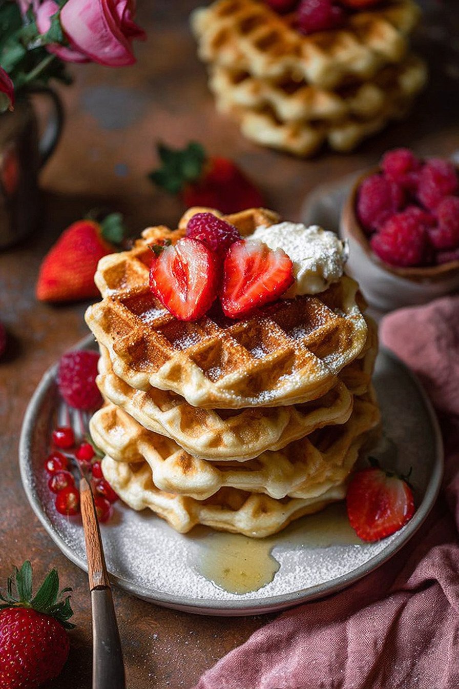 Wer mag, serviert die Waffeln mit frischen Beeren. So werden sie fast zu einem Fruchtiger Kuchen. Im Sommer passen sie perfekt als Leichter Sommerkuchen. Und für Kindergeburtstage konkurrieren sie locker mit Leichte Torten Rezepte Geburtstag. Für mich sind sie sogar ein kleiner Sommerkuchen Einfach Moment im Alltag.