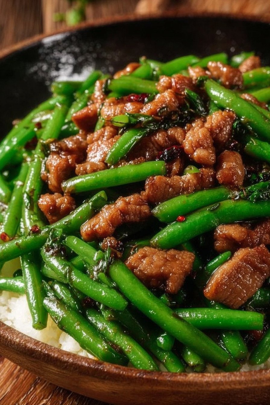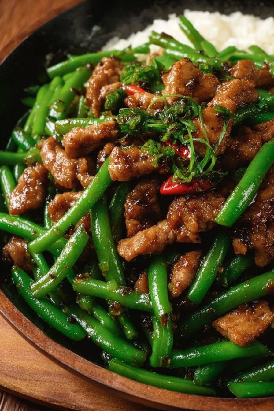 • 9) Schweinefleisch Pfanne mit Grünen Bohnen