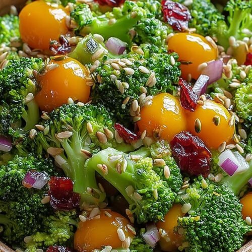 We start with fresh broccoli cut small for quick blanching. The color glows green and the aroma smells clean. Grapes add juicy bites, cranberries add chew, and toasted seeds add a warm nutty note. The dressing uses Greek yogurt for body and lemon for spark. Honey softens the edges, while Dijon gives a tiny kick that wakes the tongue without pushing too far.