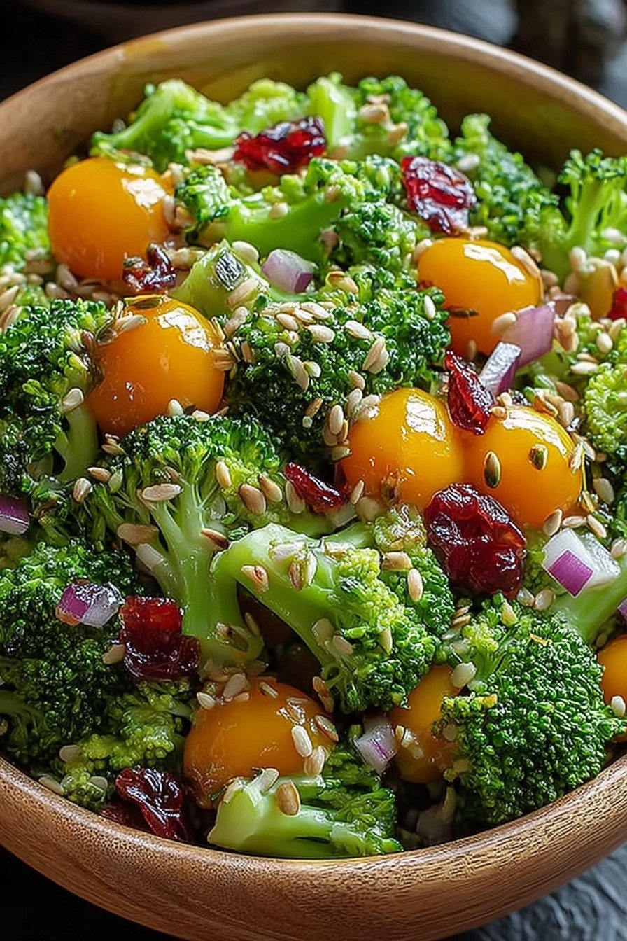 Dried cranberries These give chew and a sweet tart echo. They hold texture even after a short rest with the dressing. You could swap in chopped dates for deeper notes. A modest handful goes a long way and keeps the bowl lively. Easy broccoli salad recipes like this one love a dried fruit moment.