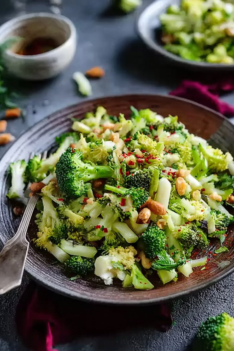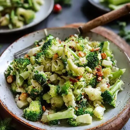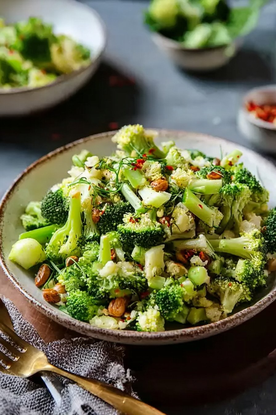 Fresh broccoli brings a clean snap. We keep stems and florets in tiny pieces so each bite feels tender. A bright yogurt lemon dressing coats the mix and sits light. Toasted nuts add warmth. Sweet apple keeps things lively. The bowl fits busy nights and slow weekends.