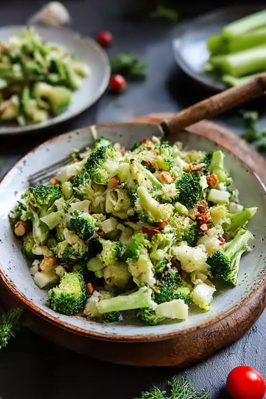 Chop small. Tiny pieces make the raw broccoli feel tender. A sharp knife helps. If you enjoy machines, Brokkolisalat Thermomix Rezepte can speed the prep.