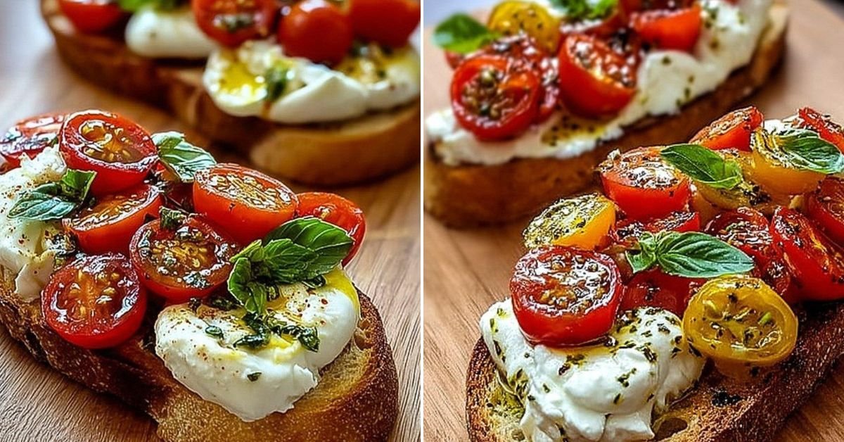- Brotscheiben mit Tomatenmischung belegen und Burrata darauf verteilen.