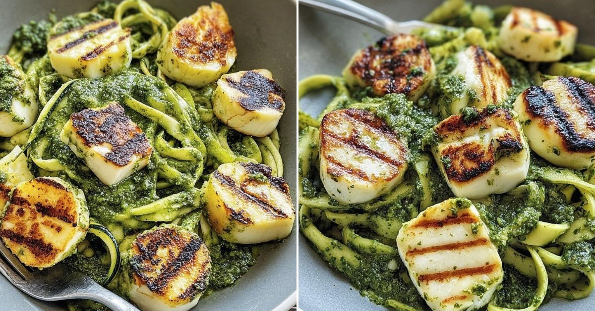 Halloumi mit Zucchini-Pesto-Nudeln healthy food rezepte vegetarisch