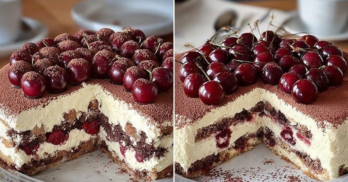 Schnelle Tiramisu Torte mit Kirschen mit Schneller Tortenboden