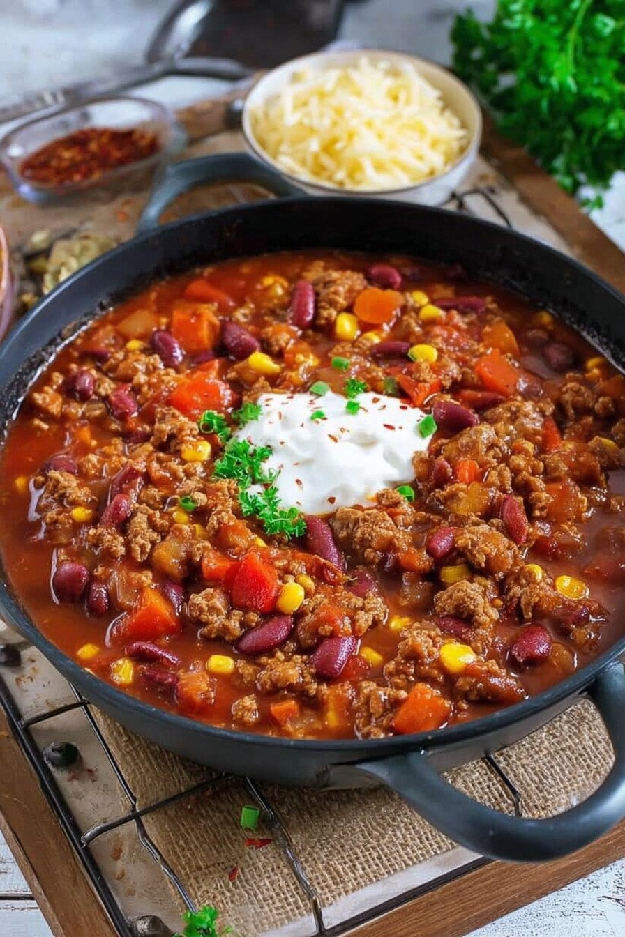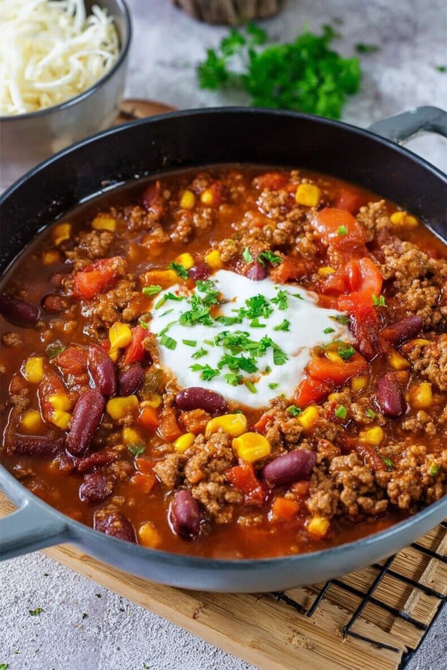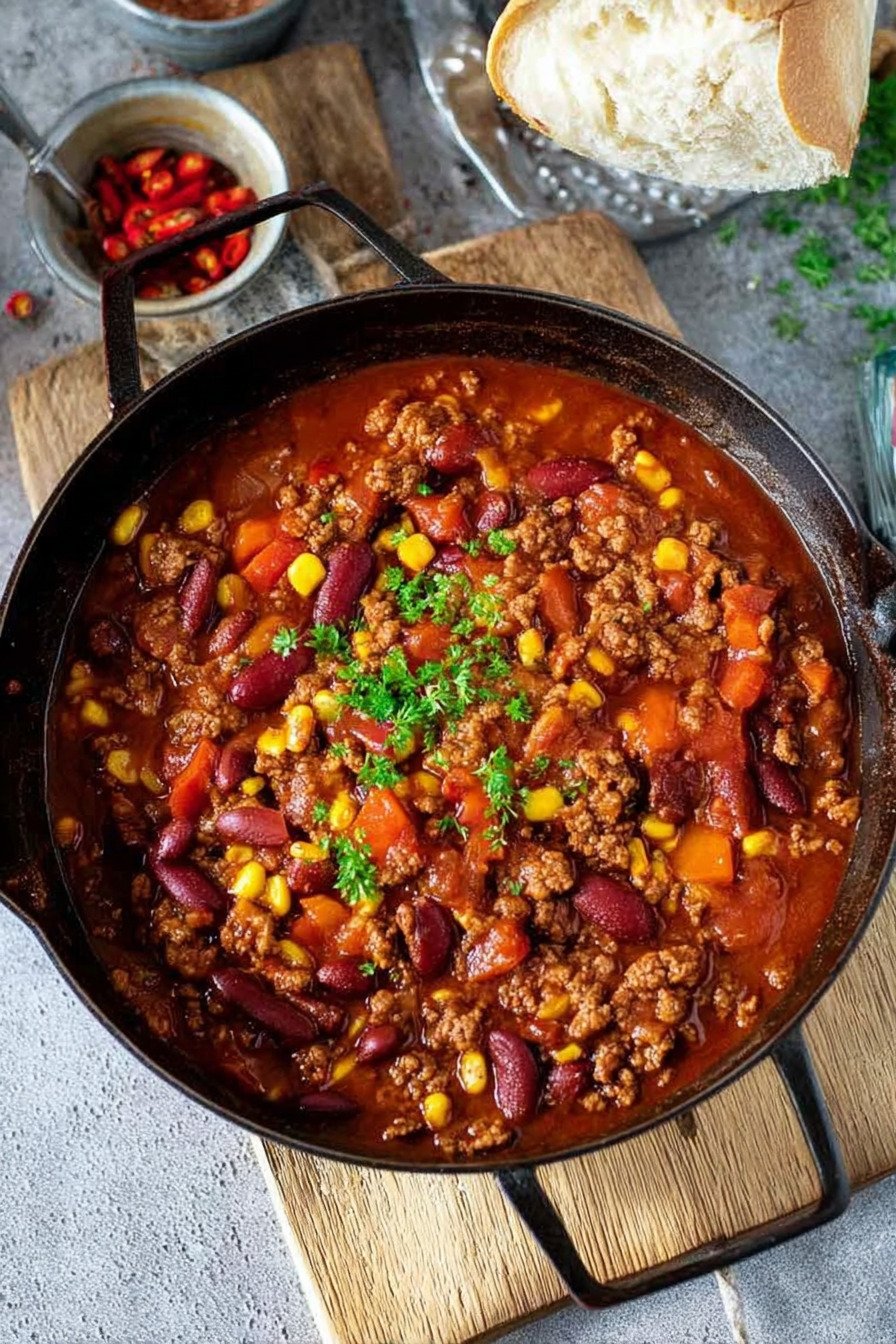 Du willst Wärme im Teller und Ruhe im Kopf. Dieses Chili liefert beides. Es kocht gleichmäßig, du rührst entspannt und das Haus riecht nach Paprika und Tomate. Die Basis hält simpel und robust. Rinderhack, Bohnen, Mais, Paprika.
