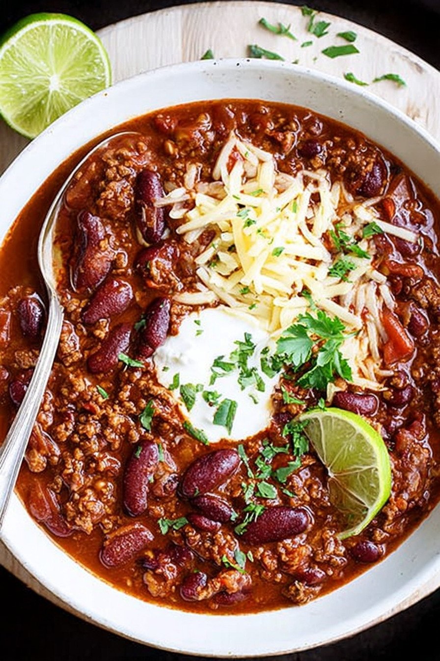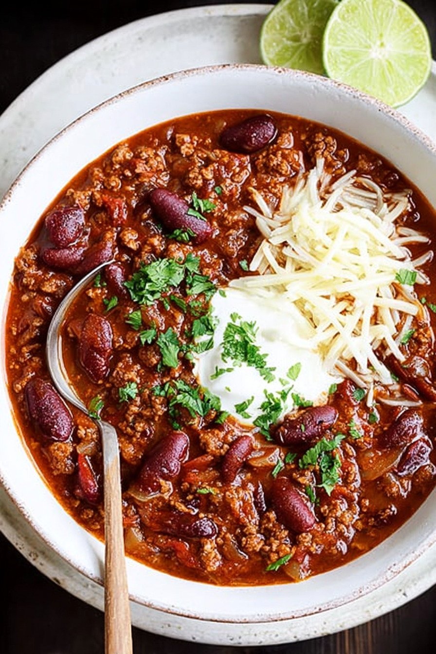 I often cook this chili on a quiet evening and serve it on the next day. The flavors have time to settle and blend in the fridge. When the pot rests, the beans, beef and tomatoes share their taste, so each spoonful feels round and balanced.