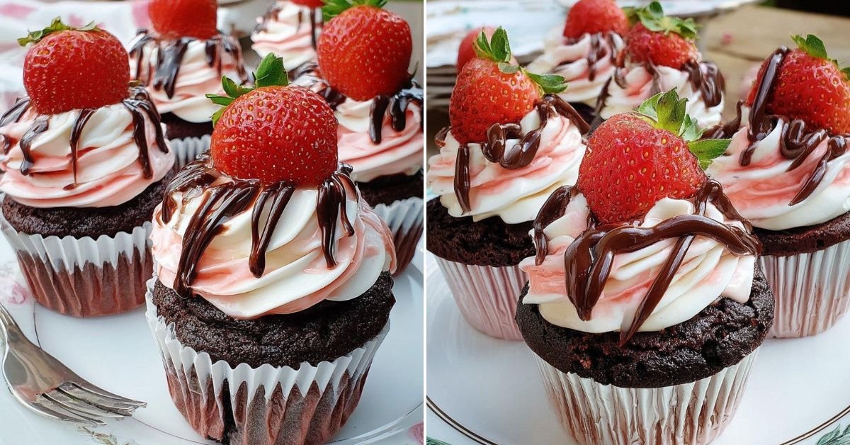 - Erdbeer Brownie Cupcakes verbinden schokoladigen Teig mit frischen Früchten