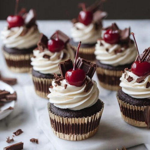 Die Schwarzwälder Cupcakes bringen das vertraute Aroma der Schwarzwälder Kirschtorte in kleine Portionen. Schon beim ersten Bissen spürt man, wie saftiger Schokoladenteig und fruchtige Kirschen harmonisch verschmelzen. Ob für eine festliche Kaffeerunde oder einen entspannten Nachmittag, sie passen in viele Anlässe.