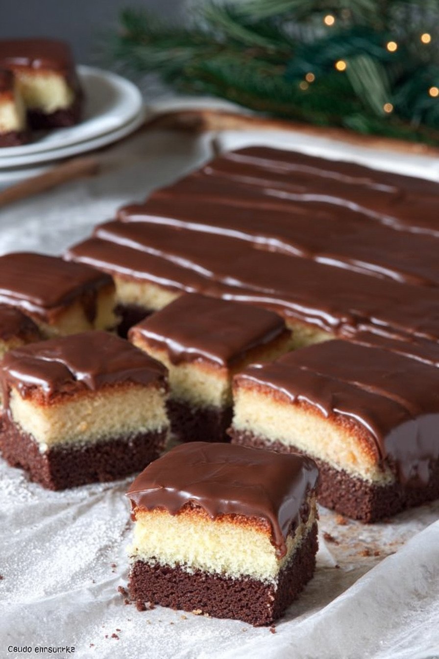 Wenn der Duft von Zimt durch die Küche zieht, beginnt für mich die Zeit der Weihnachtsbäckerei Rezepte. Dieser weihnachtlicher Blechkuchen erinnert an Dominosteine aus der Kindheit. Saftiger Boden, fruchtige Schicht und zarte Schokolade. Genau so stelle ich mir Weihnachts Kuchen Rezepte vor, die wir gern teilen. Ich backe diesen Kuchen gern an einem ruhigen Adventsnachmittag. Wir stellen eine Tasse Tee auf den Tisch, schneiden später große Stücke und probieren sofort das erste noch lauwarme Eck. Das Rezept gehört für mich zu den Blechkuchen Rezepte Einfach, die jedes Jahr wieder auf dem Tisch landen. Viele Leser suchen nach Leckere Blechkuchen Rezepte für die kalte Zeit. Dieser passt perfekt zu Kuchen Rezepte Weihnachten und zu Kuchen Rezepte Blechkuchen, die ohne viel Aufwand gelingen. Der Teig gelingt flott. Die Schichten wirken eindrucksvoll. Und am Ende steht ein Kuchen auf dem Blech, der nach Winter, Kakao und ein wenig Kindheit schmeckt.