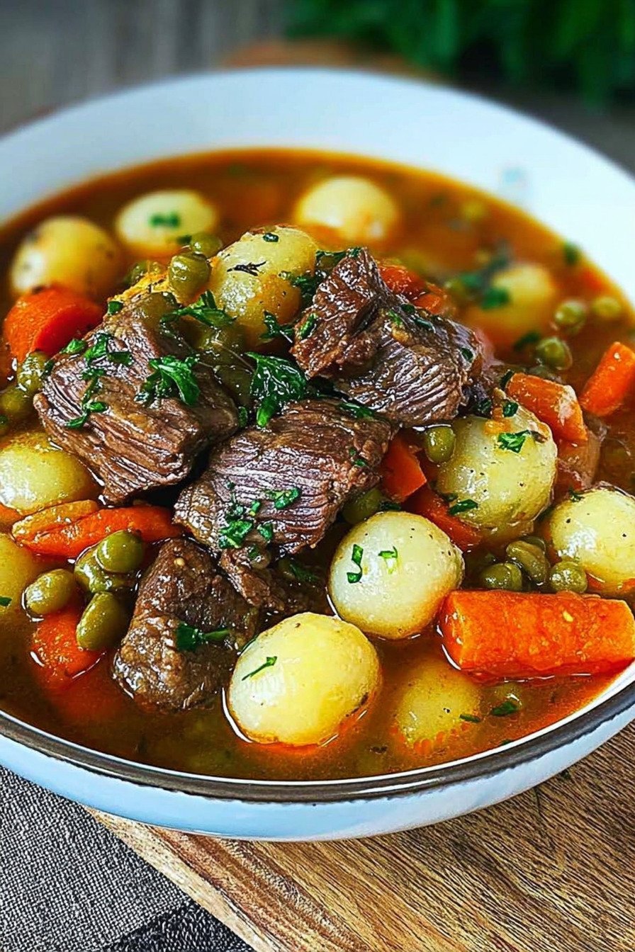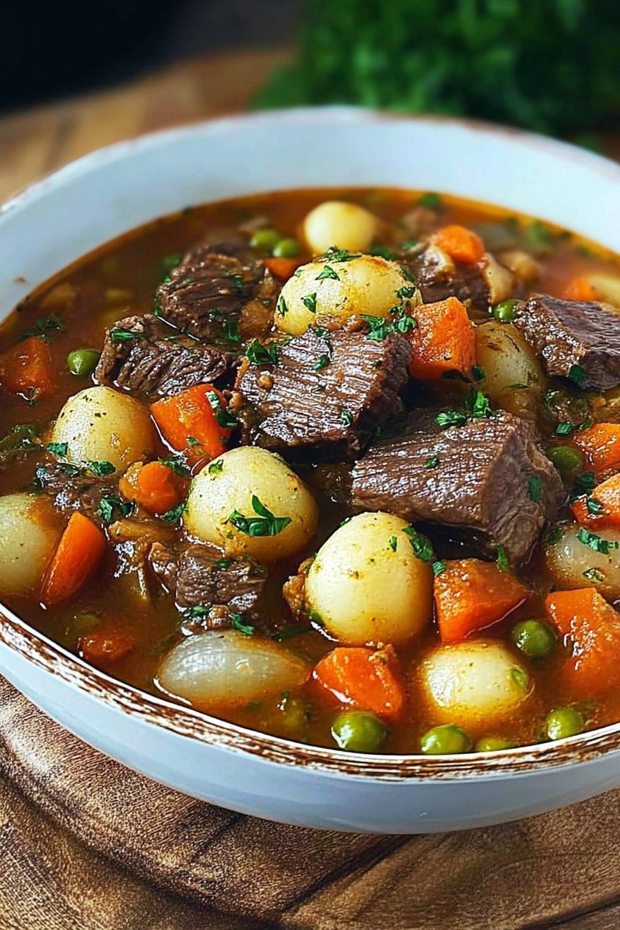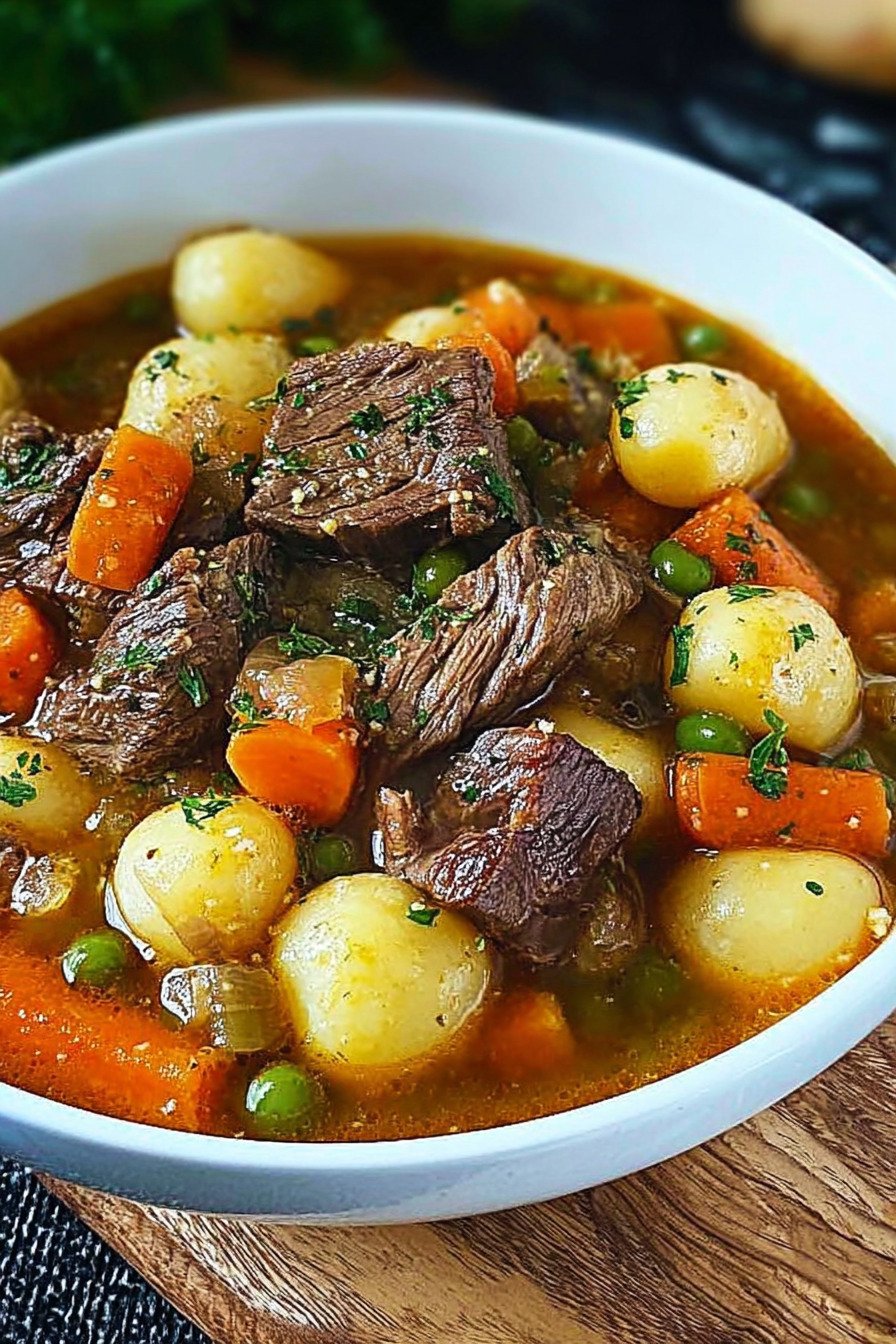 Ich koche den Eintopf ruhig und klar. Zartes Rind, sanftes Gemuese, wenig Zutaten. Ergebnis vertraut.
