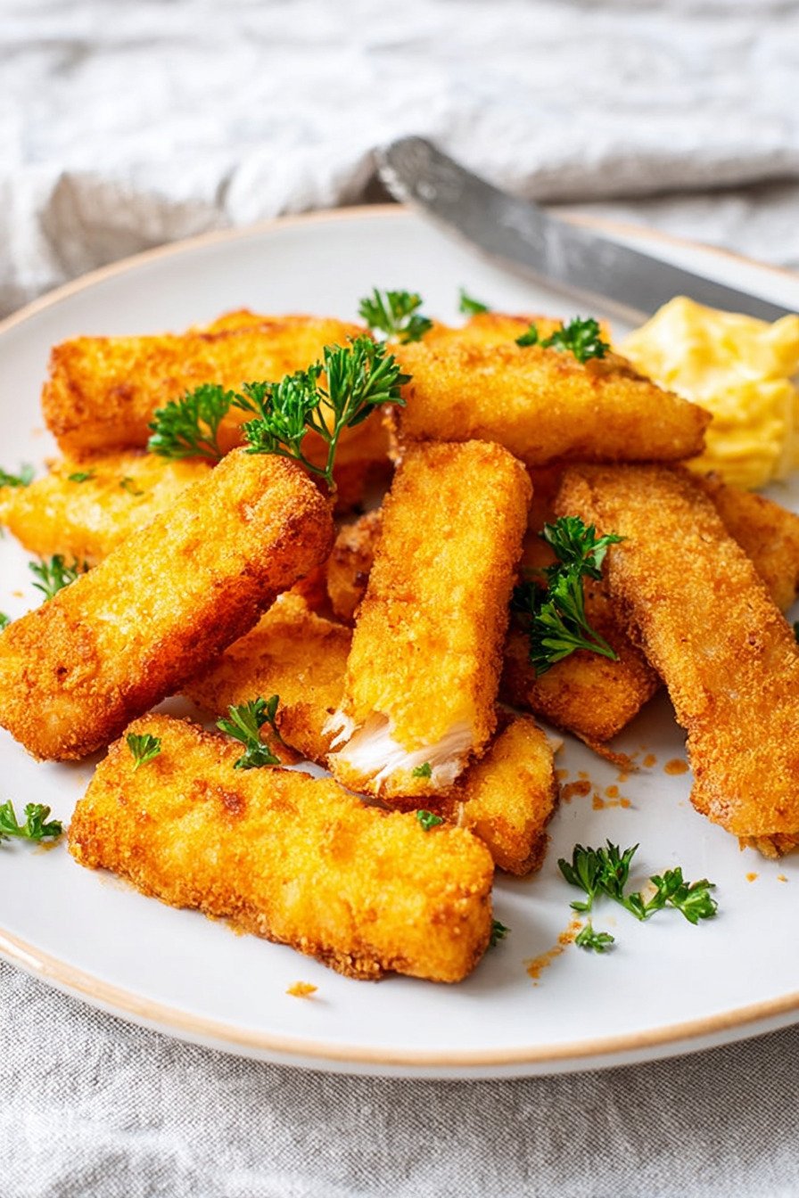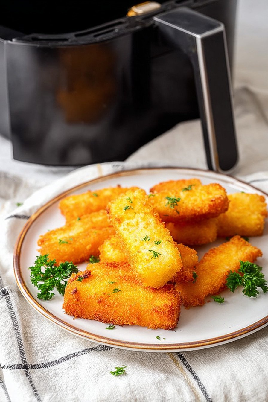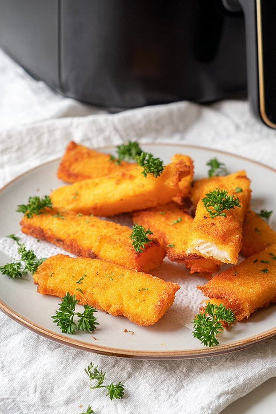- 9) Fischstäbchen aus der Heißluftfritteuse