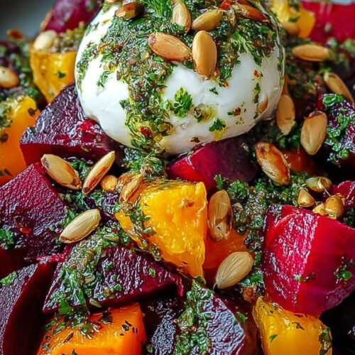 Dieser gebratene Rote-Bete-Süßkartoffel-Salat ist eine moderne Interpretation klassischer rote beete rezepte und bringt intensive Aromen auf den Teller. Die Kombination aus süßer Roter Bete und cremiger Süßkartoffel sorgt für ein harmonisches Geschmackserlebnis, das sowohl sättigend als auch leicht ist.