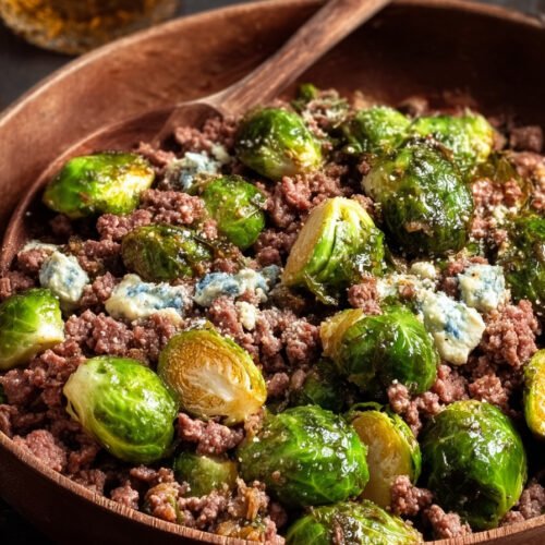 The mix brings tender Brussels sprouts and juicy ground beef. Garlic wakes the pan. A small hit of mustard lifts the sauce. I add lemon zest for a bright edge. The bite feels balanced and cozy.