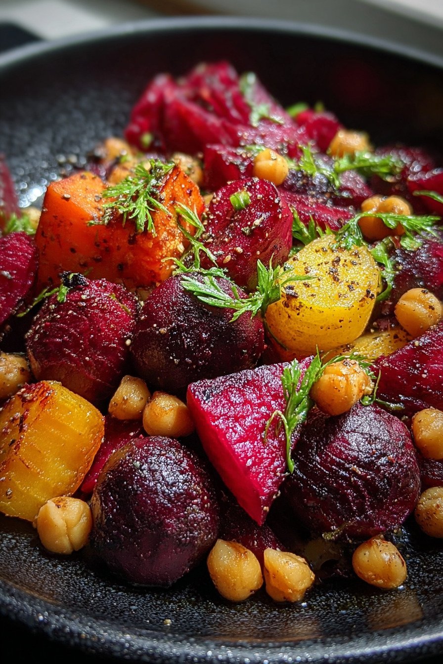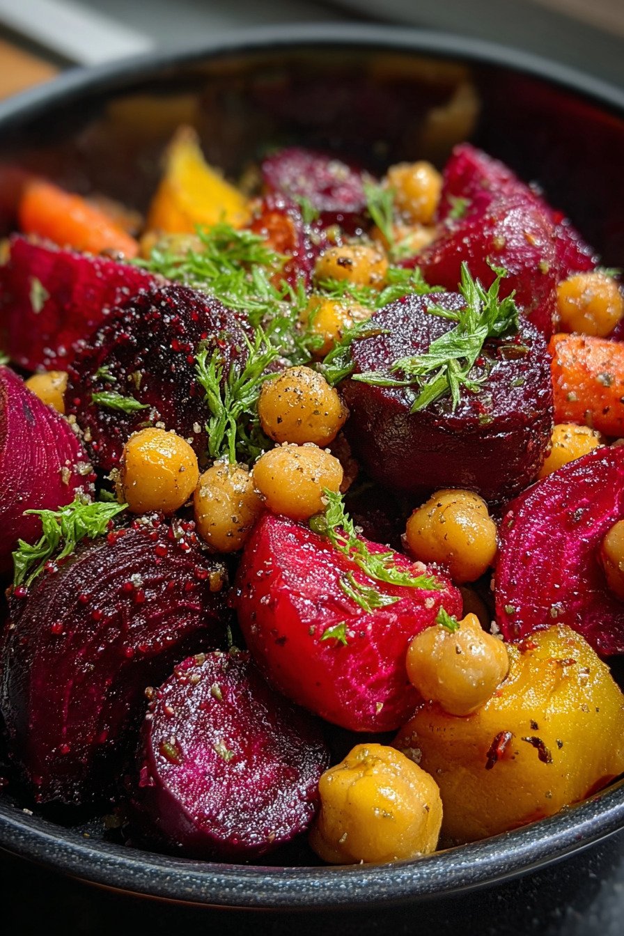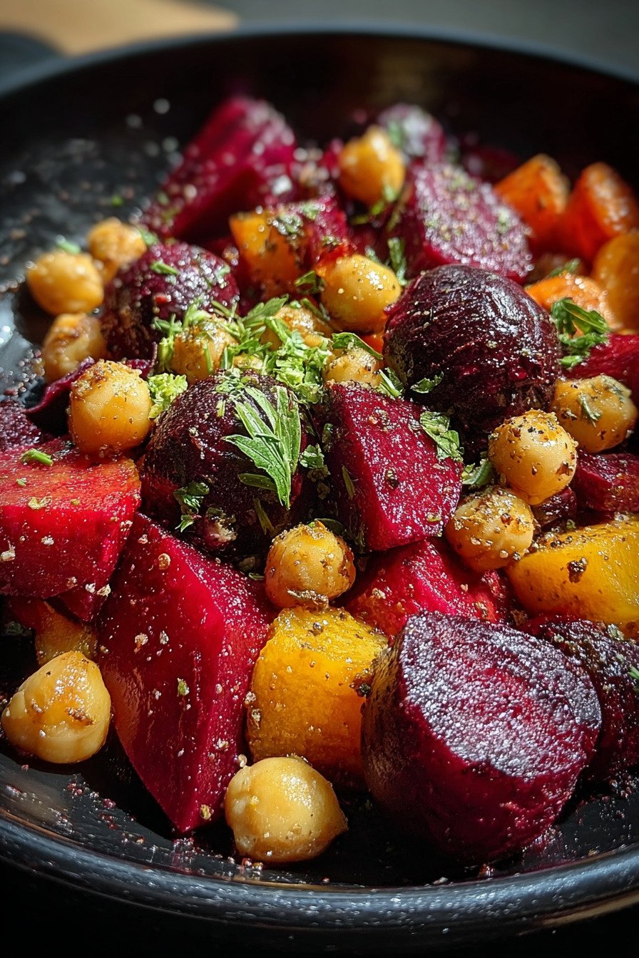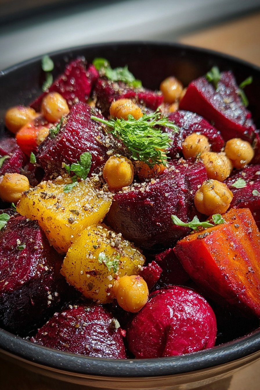 Wenn du auf der Suche nach aromatischen rote beete rezepte bist, wirst du dieses Gericht lieben. Die Kombination aus gerösteter Roter Bete, Knoblauch und knusprigen Kichererbsen bringt nicht nur Farbe auf den Teller, sondern auch unglaublich viel Geschmack. Egal ob du klassische Rote Bete Rezepte suchst oder etwas Neues ausprobieren möchtest – dieses Rezept passt perfekt in deinen Alltag. Viele kennen Rote Bete vor allem als Rote Bete Salat oder als cremige Rote Bete Suppe, doch geröstet entfaltet sie ein besonders intensives Aroma. Auch als Basis für kreative Ideen wie Rote Bete Carpaccio oder Rote Bete Aufstrich eignet sich dieses Gemüse hervorragend. Dieses Rezept zeigt dir eine einfache Variante, die sowohl als Beilage als auch als Hauptgericht überzeugt. Selbst Fans von Rote Bete Risotto werden hier auf ihre Kosten kommen, denn die gerösteten Aromen lassen sich vielseitig kombinieren. Mit wenigen Zutaten und wenig Aufwand erhältst du ein gesundes Gericht, das perfekt in jede moderne Küche passt. Diese rote beete rezepte Idee wird garantiert zu einem deiner Favoriten.