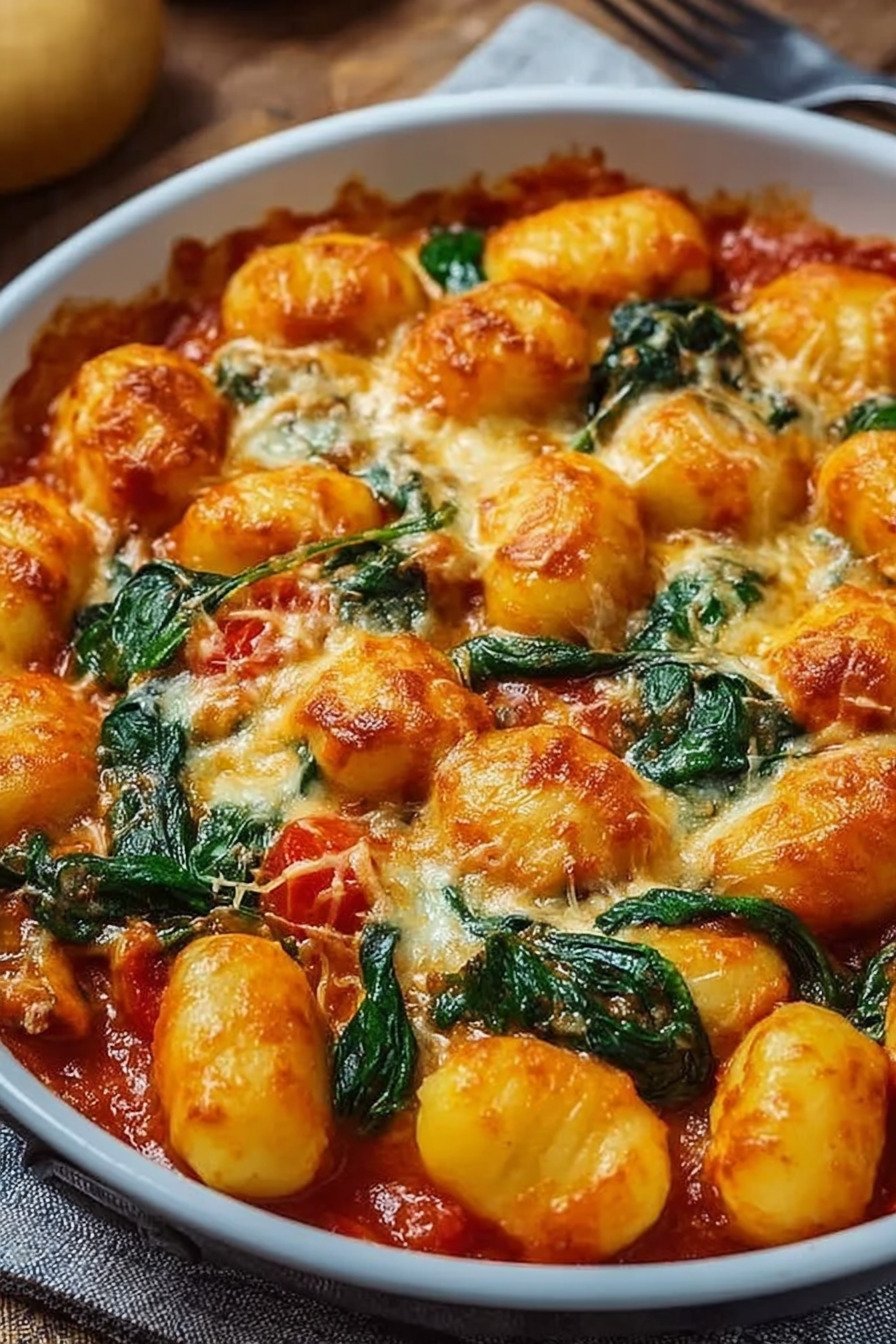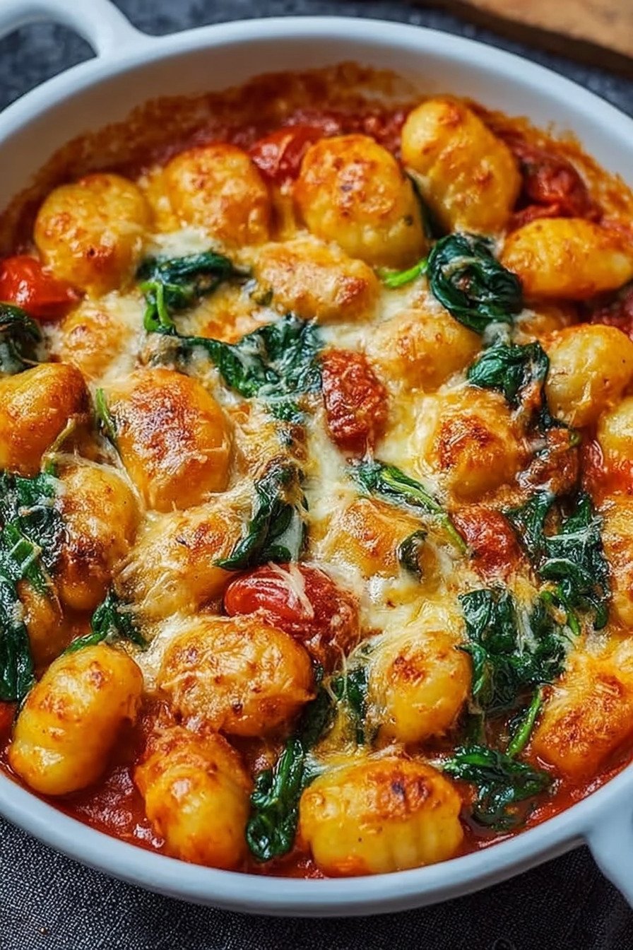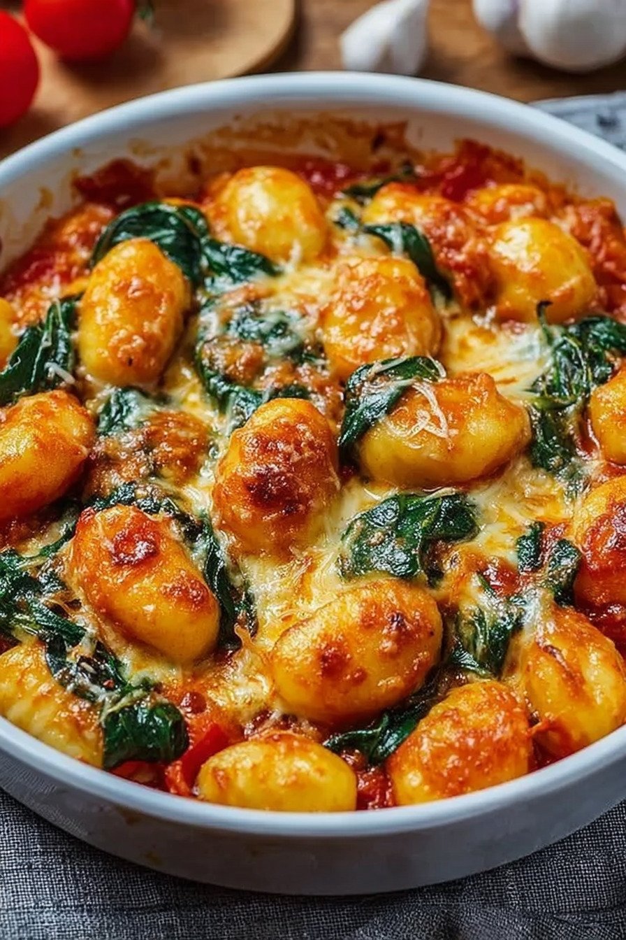 - Saftige Tomaten, zarter Spinat und eine cremige Gnocchi Soße sorgen für viel Geschmack mit wenig Aufwand.
