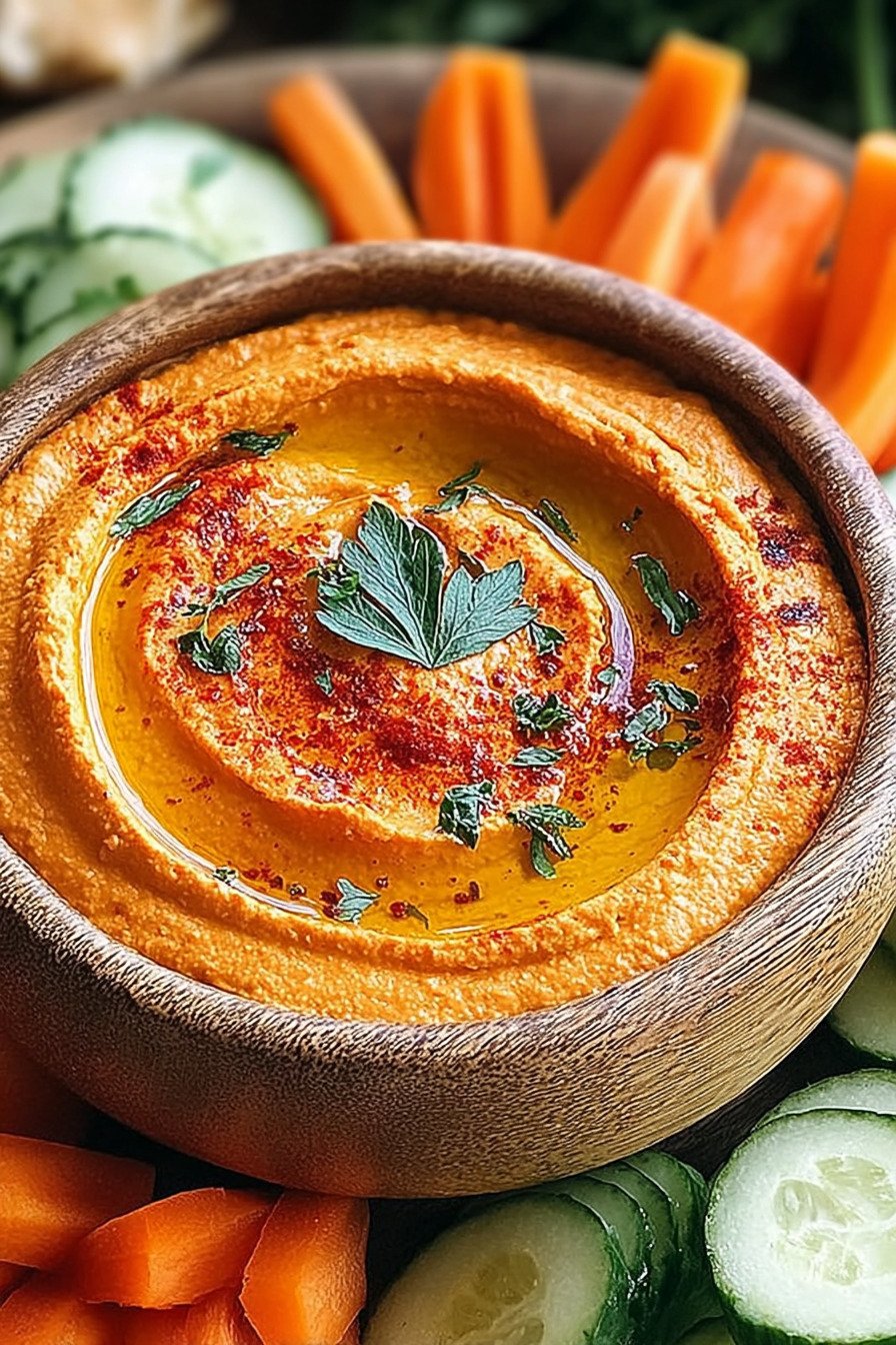 Make the dip in the morning. The flavor deepens as it rests. The color stays bright. Stir before serving and add a touch of olive oil.
