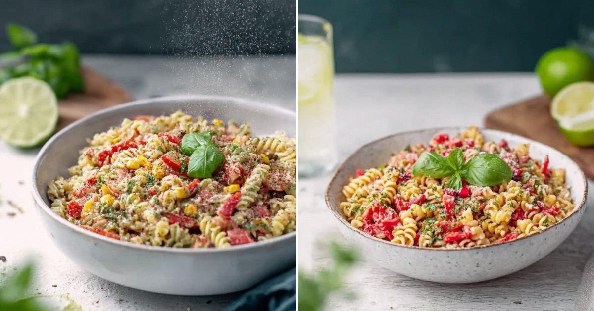 Nudeln: Kurze Nudeln wie Fusilli oder Penne speichern Dressing in ihren Formen und machen jeden Bissen saftig.