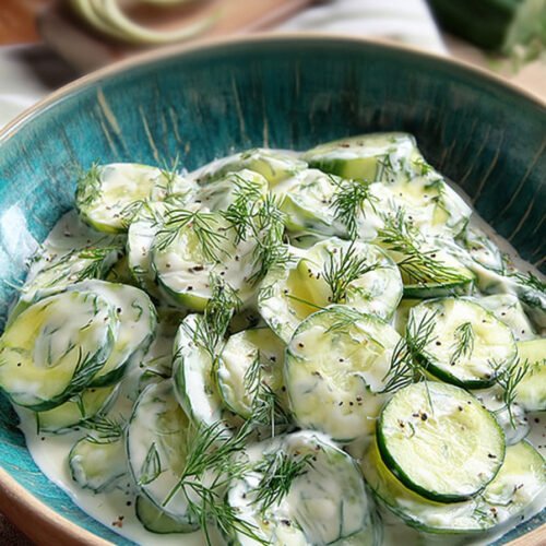 I am Emilia from Emilia Rezepte and I keep this salad close. The bite feels crisp. The dill smells bright. The cream stays light. The mix comes together fast and simple. You can find more on Emilia Rezepte at https://www.emiliarezepte.com.