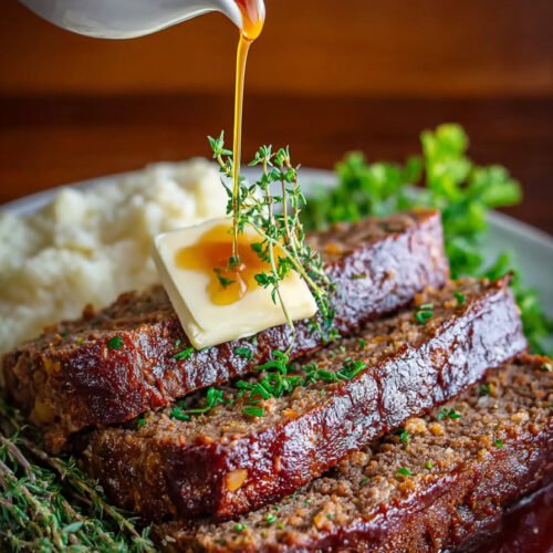 Wer mehr Geschmack möchte kann etwas Petersilie in die Fleischmasse geben. Frische Kräuter bringen eine angenehme Frische in das Gericht. Ein kleiner Trick aus meiner Küche besteht darin etwas Brühe über den Braten zu geben wenn er halb gar ist. So bleibt er saftig.