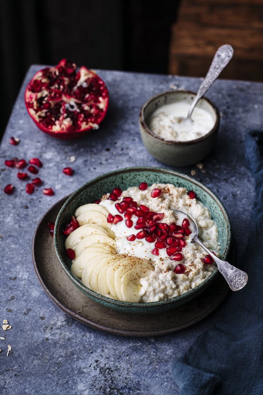 - Cremiges Frühstück mit warmen Haferflocken und frischem Joghurt