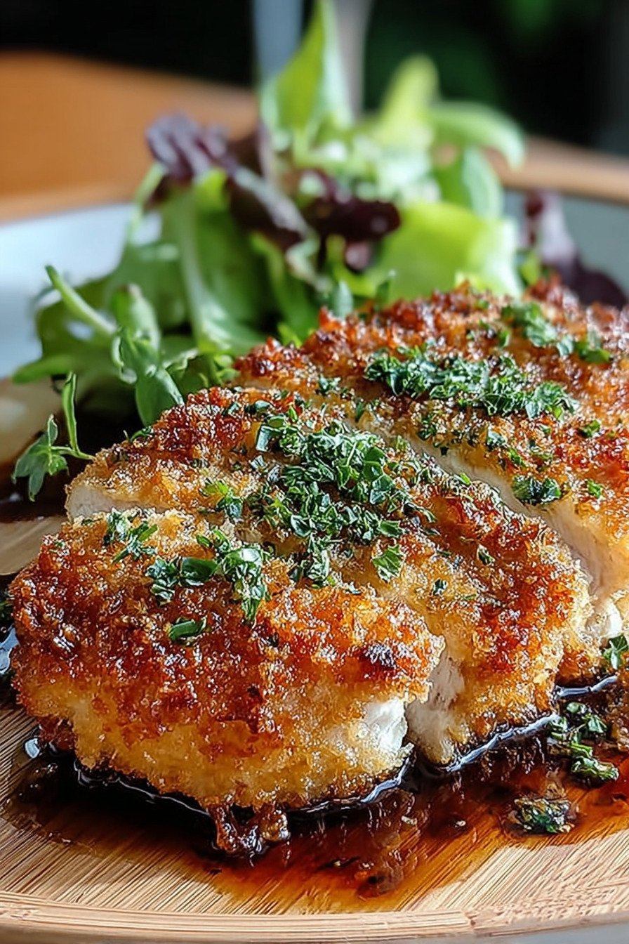 I grate fresh Parmesan and chop soft parsley. I smell garlic and lemon. The kitchen wakes up. The mix clings to the chicken and bakes into a tender cap. It crackles when the fork touches the top.
