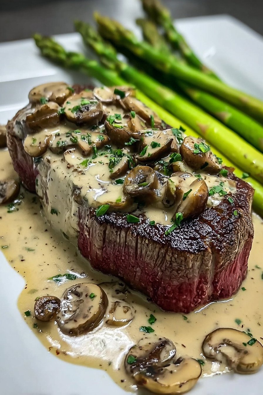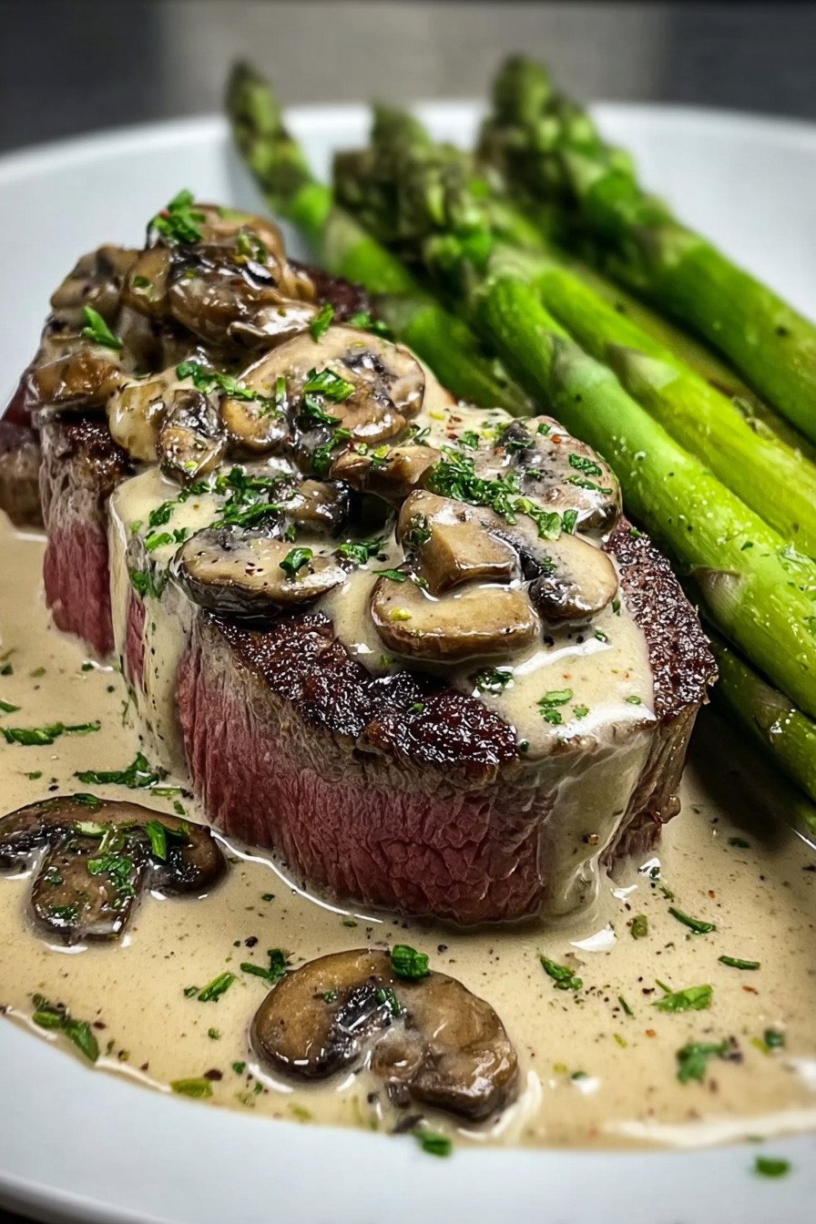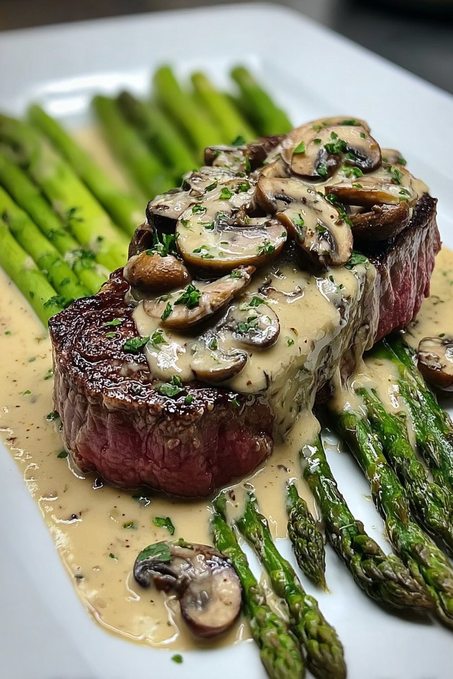 2) Easy Steak mit cremiger Pilzsauce und Spargel Recipe