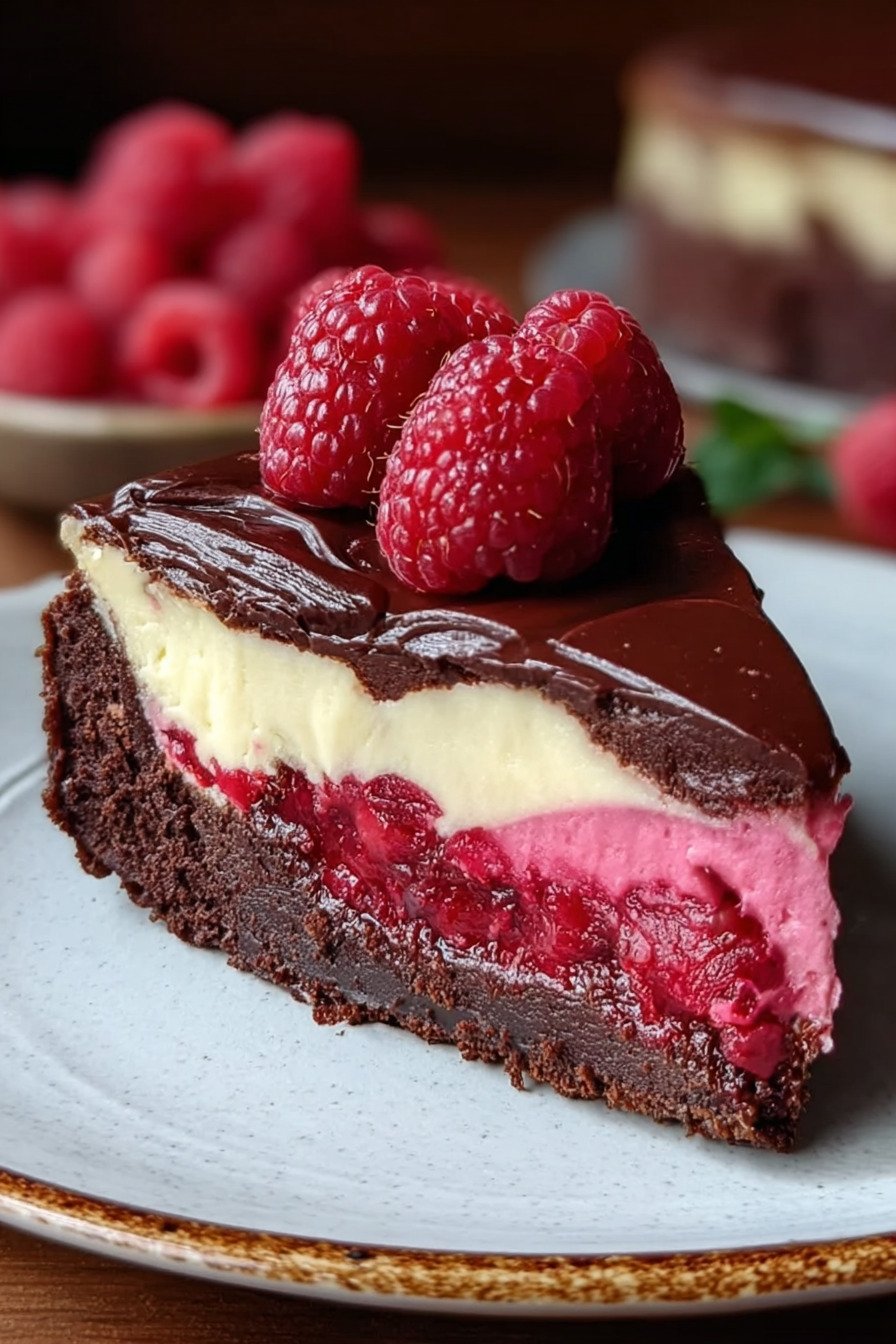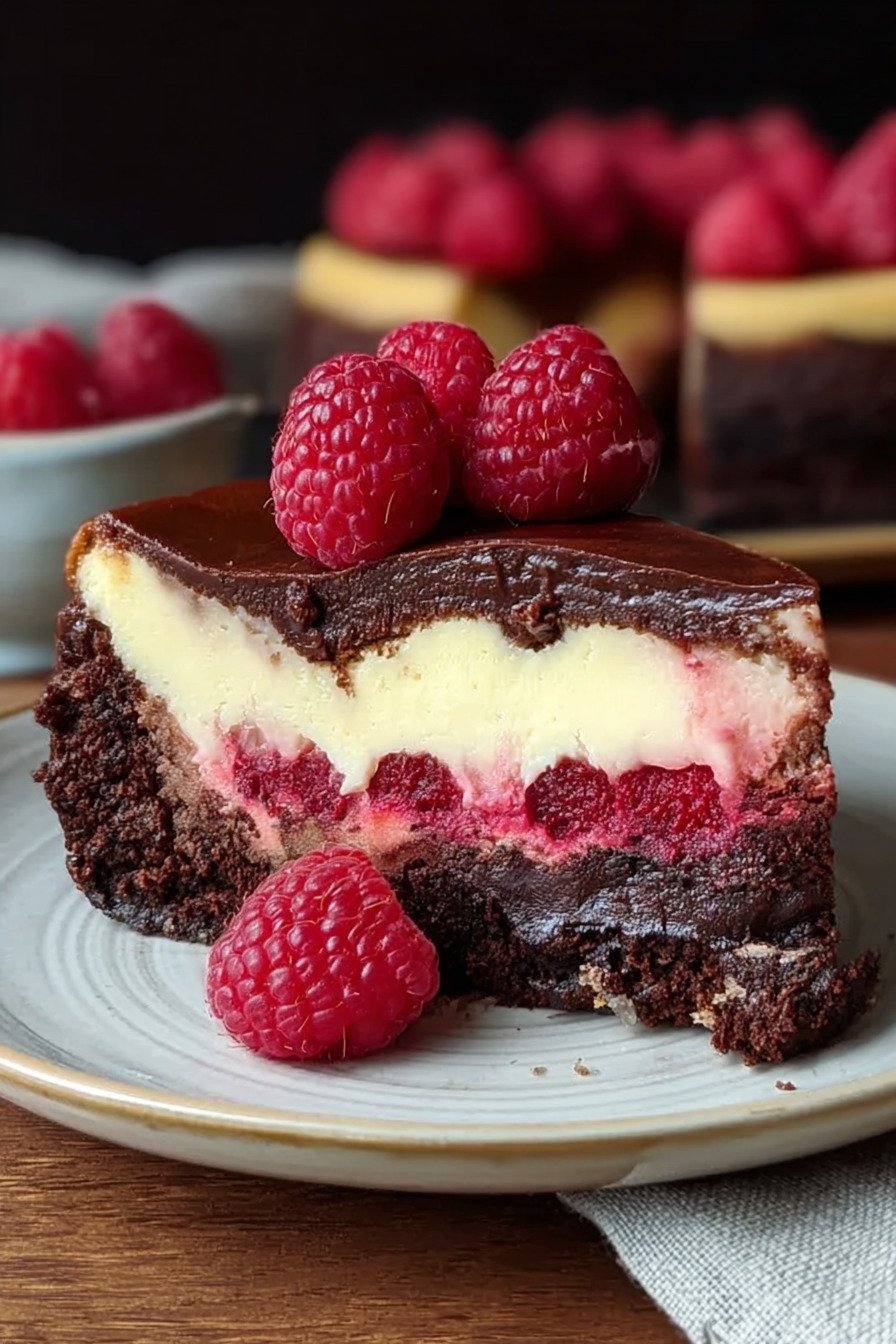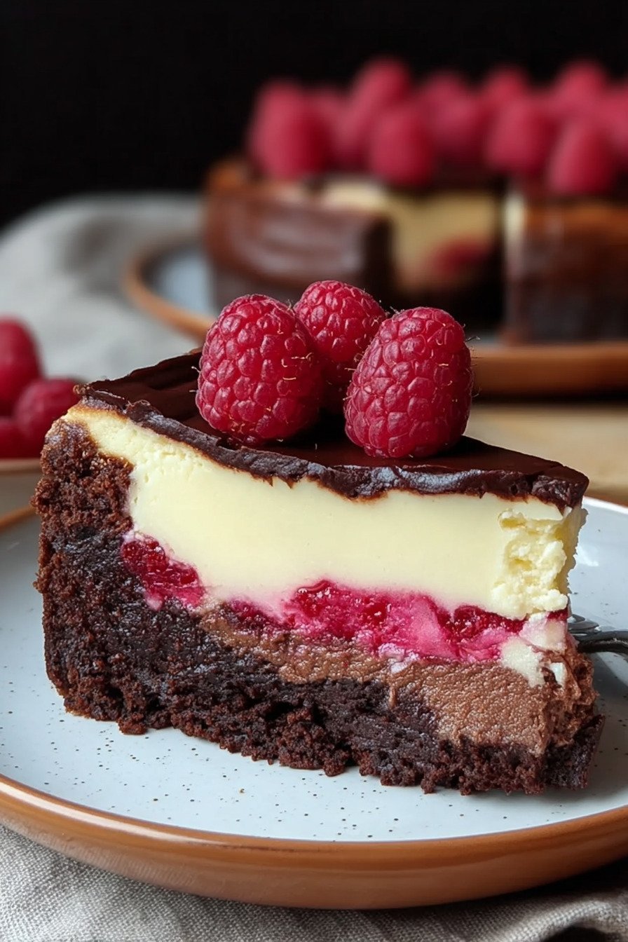 - Dieser Himbeer-Brownie-Cheesecake vereint saftigen Schokoladenbrownie, cremige Cheesecake-Schicht und fruchtige Himbeeren.
