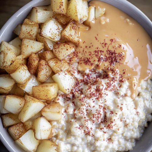 Beim Aufwärmen einfach etwas Pflanzenmilch hinzufügen, da der Brei beim Kühlen fester wird. So erhältst du wieder eine cremige Konsistenz.