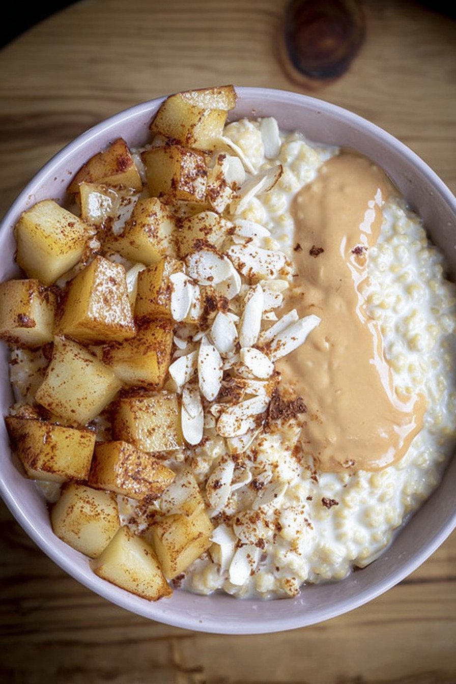 Pflanzenmilch Sie verleiht dem Brei seine cremige Textur und macht das Gericht komplett vegan – perfekt für ein leichtes Frühstück.