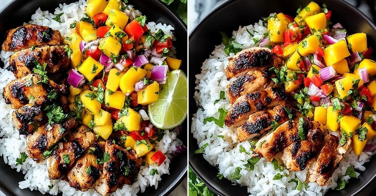 Jerk Chicken Bowl mit Mango-Salsa & Kokosreis