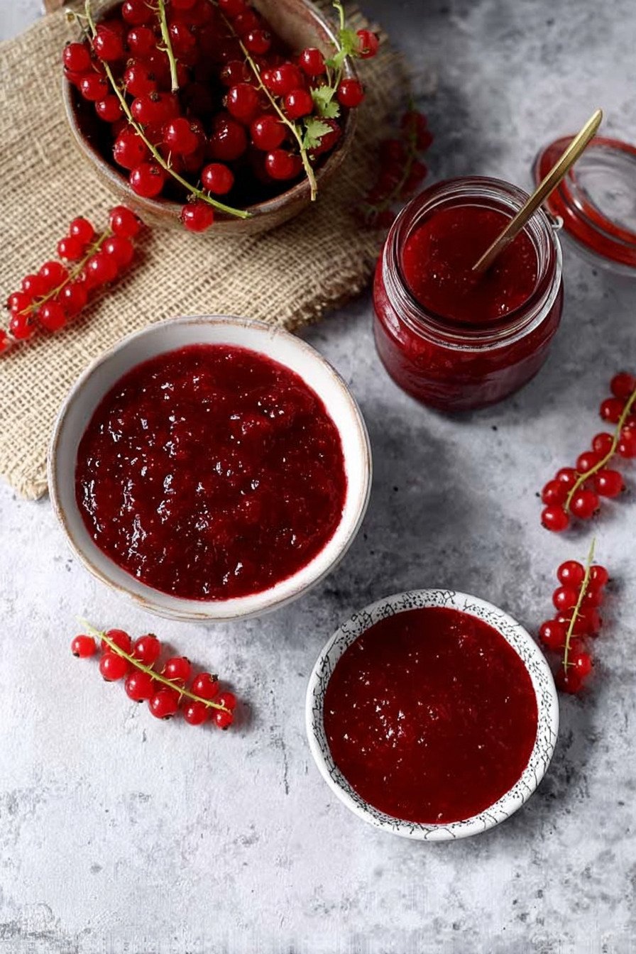Red currants I use fresh berries that feel firm and look glossy. The taste brings tart energy that keeps the spread lively. Rinse well and pick off stems. If seeds bug you you can press the hot fruit later for a smoother spoon. This fruit anchors the flavor and keeps the color bold.