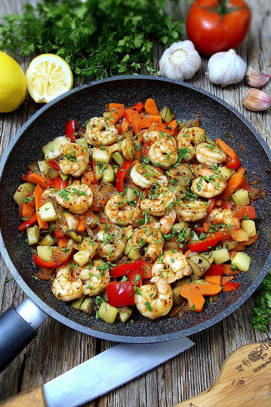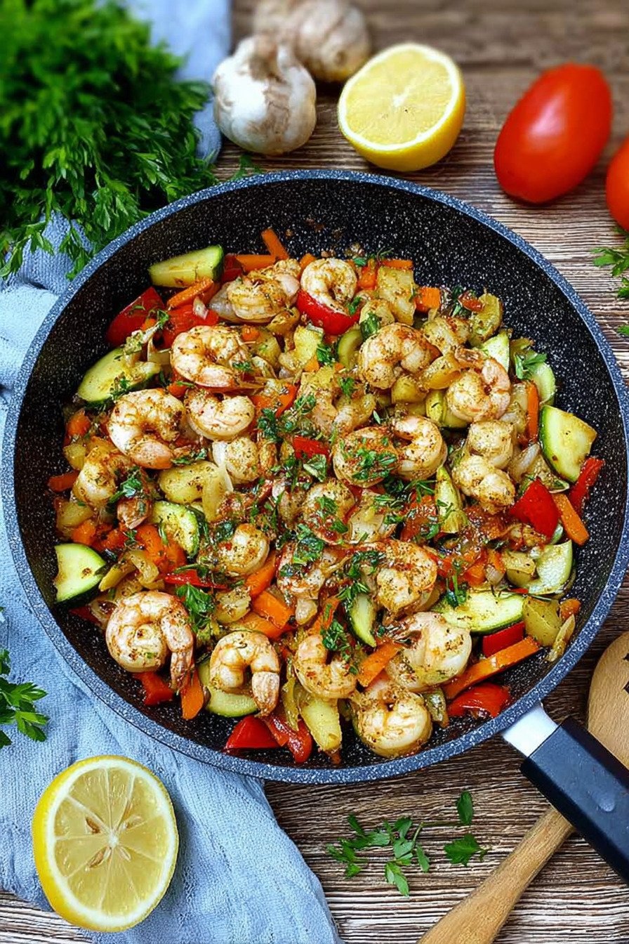 Kalorienarme Mittagessen Garnelen Gemüsepfanne Schnell und Lecker