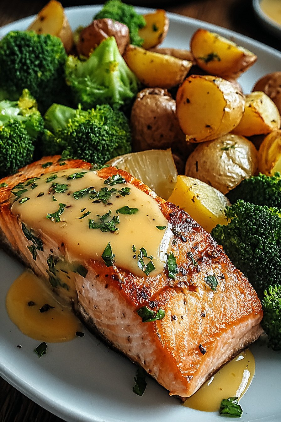 - 9) Zitronenbutter Lachs mit knusprigen Kartoffeln und Brokkoli