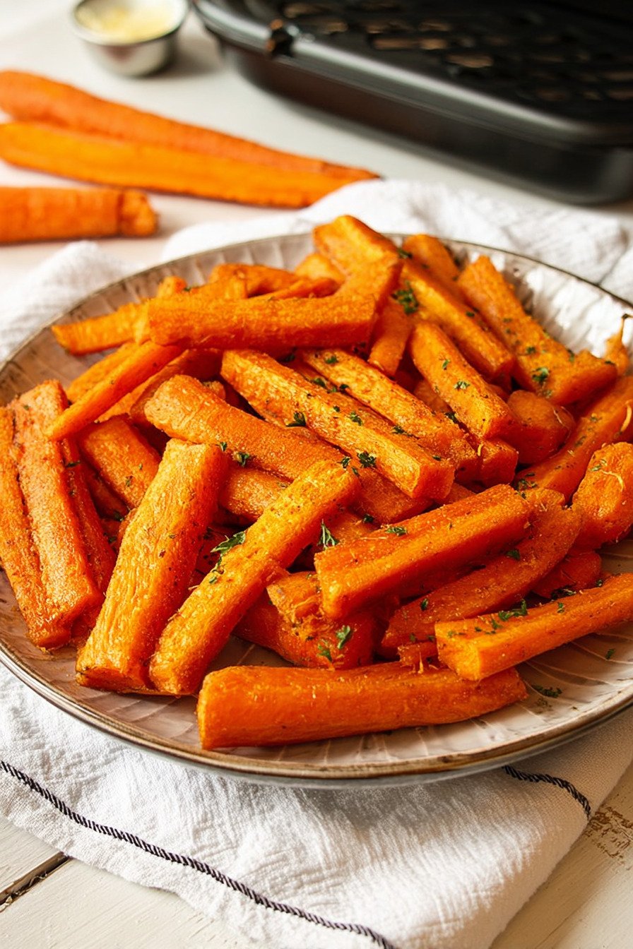 I serve the carrots with tahini or with a lemon yogurt. A squeeze of citrus wakes the dish. A spoon of herbs adds a fresh lift. You can flip these into a warm Karotten Salat the next day. The base stays the same. The vibe shifts. deutsche Heißluftfritteuse Rezepte help readers who search in German.