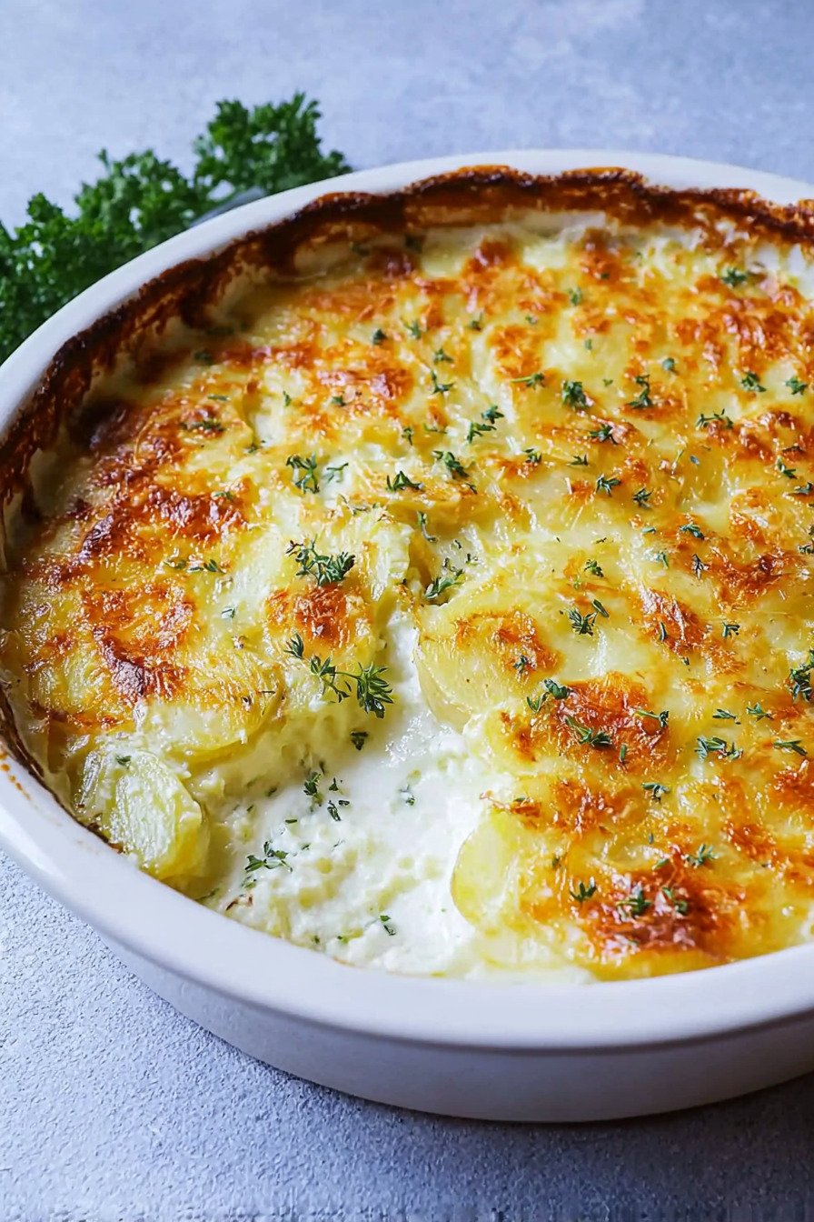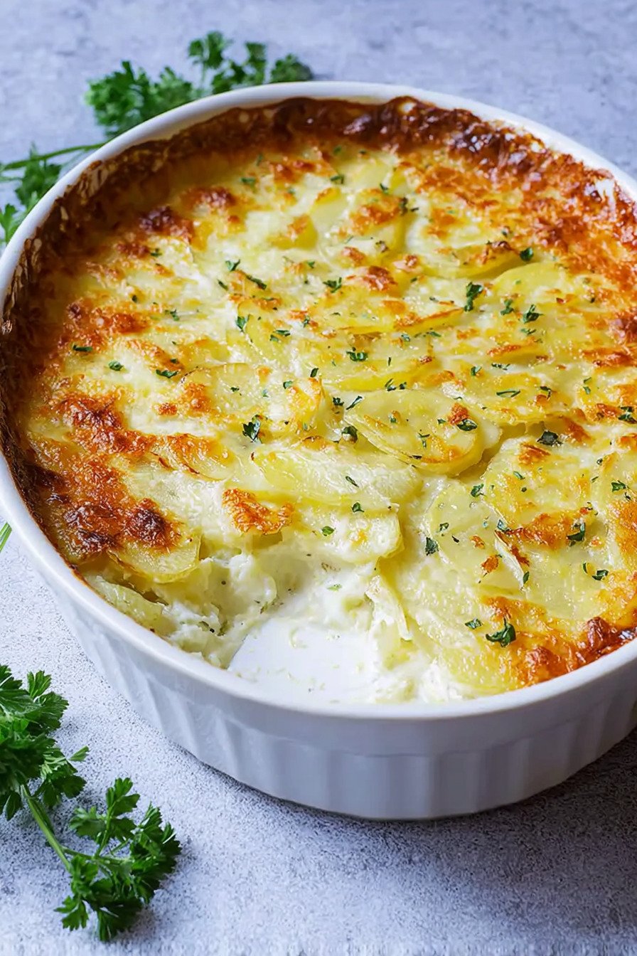 The recipe builds on thin potatoes and a gentle sauce. Heat turns the top golden. The center stays tender. The taste sits between creamy and fresh. A side salad fits well. Kids approve. Grown ups sneak seconds.