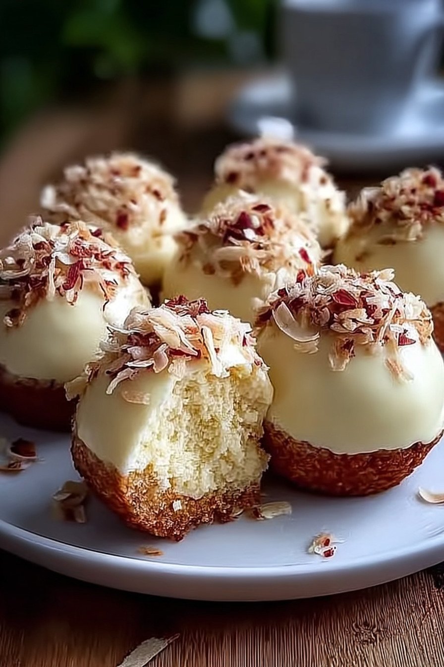 Schritt 6 Kugeln in Kokos wälzen oder kurz in Schokolade tauchen Erdbeerkrümel streuen