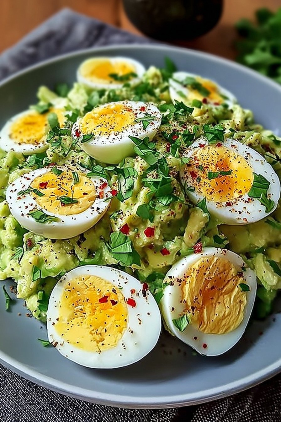 One serving gives an even balance of protein and fat with very few carbs. Eggs bring complete protein and key vitamins. Avocado adds fiber and heart friendly fats that keep you full. The yogurt lightens the sauce and adds a bit of calcium. The mix feeds the body and keeps energy steady through the evening.