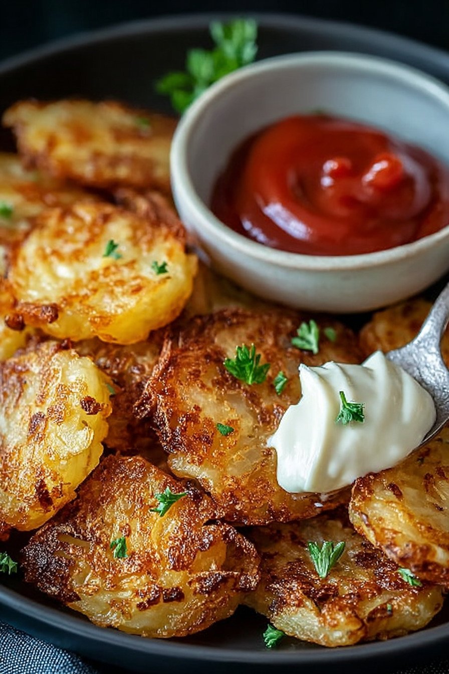 - Diese Hashbrowns werden außen knusprig, innen zart und brauchen deutlich weniger Öl als klassische Pfannenrezepte.