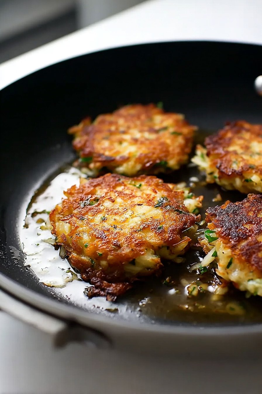 Eggs Two eggs bind the shreds and help the patties hold shape. The edges brown and the middle sets. The texture reads light not heavy which keeps the plate balanced.