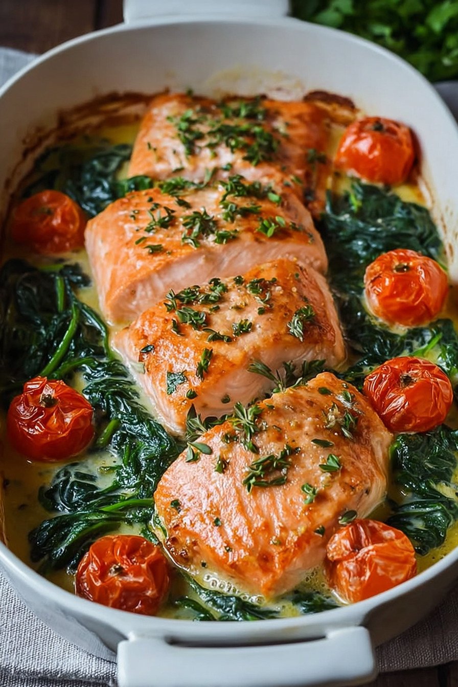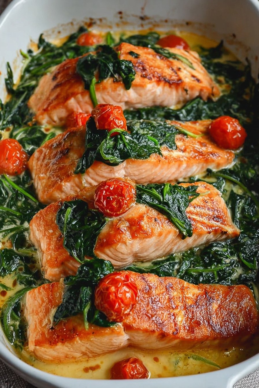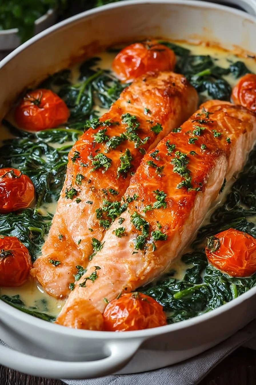 Das Gericht passt gut in einen aktiven Tag. Ofenlachs liefert Protein und feine Fette. Der Spinat liefert Eisen und Farbe. Die Sauce gibt Komfort.