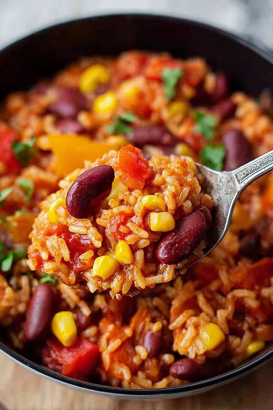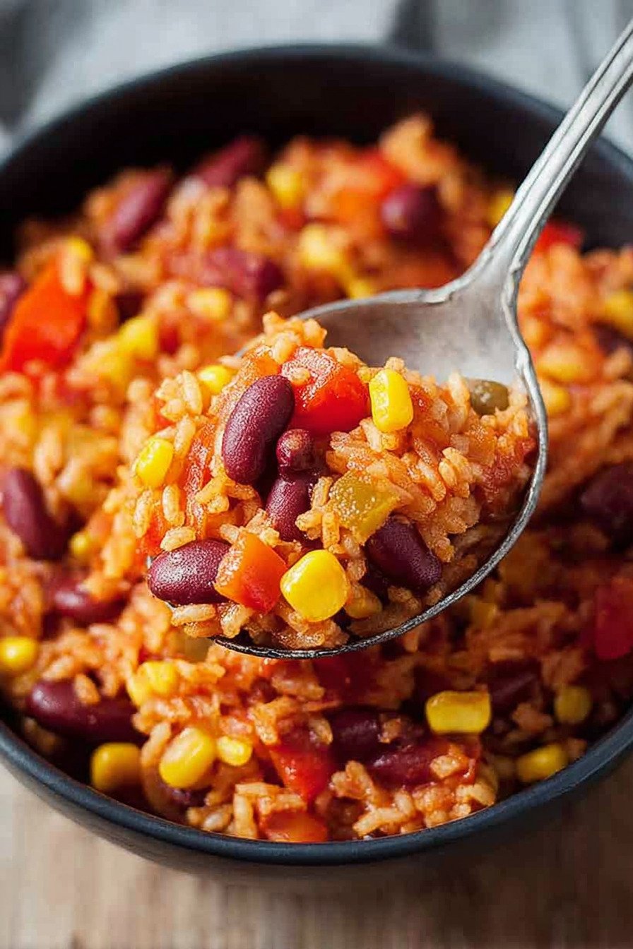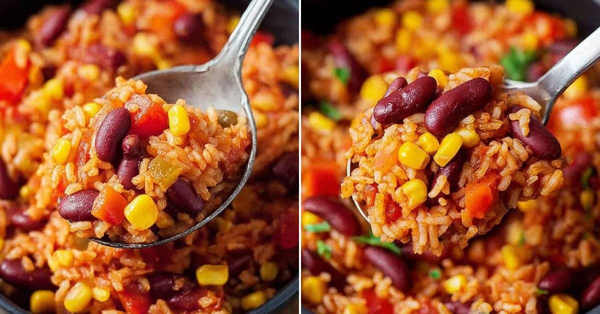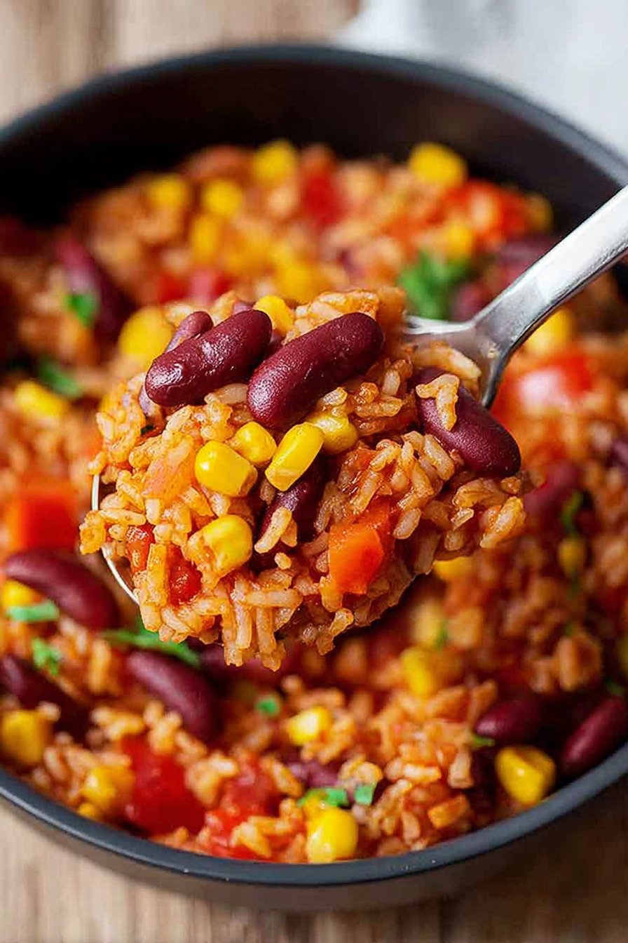 • 2) Easy One Pot Rice with Peppers Beans and Corn Recipe