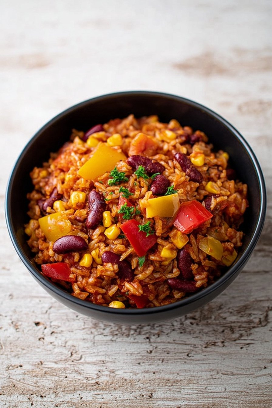 I cook a full pot on Sunday and I pack small boxes for the week. The rice holds well. The peppers keep a light snap. Beans stay tender. Corn still brings those sweet bits. This fits easy vegetarian rice dinner plans for work days.
