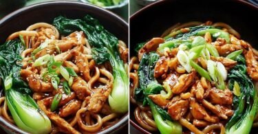 Teriyaki Hähnchen Udon mit Choy Sum asia rezepte