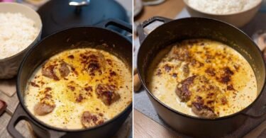 Dutchoven Rezepte Cremiger Filettopf mit Zwiebel Sahne und Käse