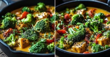 Vegetarische Rezepte Brokkoli Gemüse Pfanne mit Erdnuss Soße